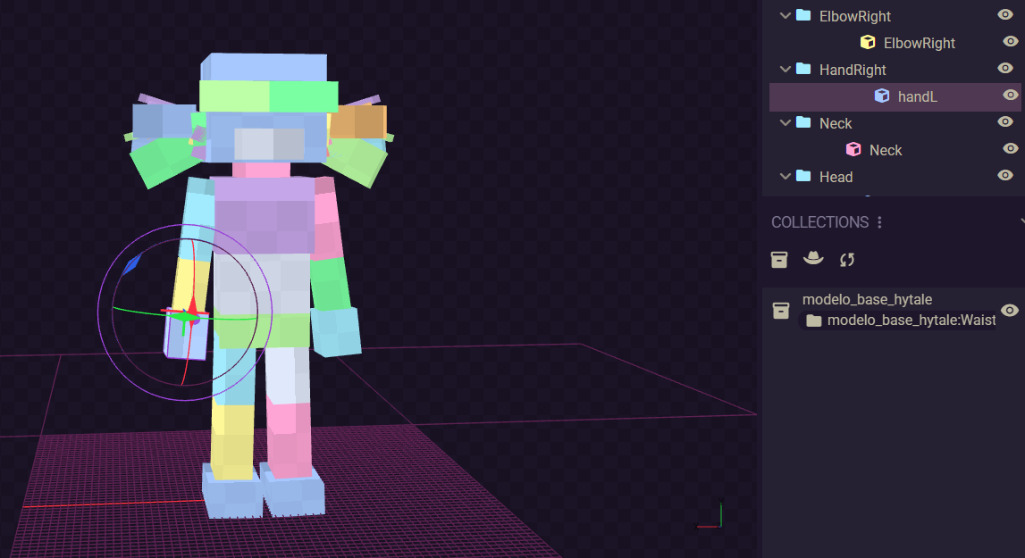 Ten en cuenta que el modelo base es para usarlo como referencia y tener una guía del esqueleto para modelar el personaje que quieras, recuerda importarlo una vez hayas instalado el plugin de Hytale, desde las colecciones, dándole al botón del «sombrero».